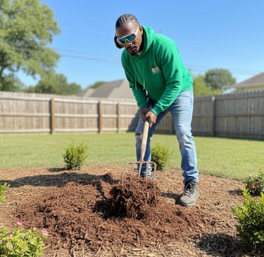 Mulching, aeration, and cleanup.